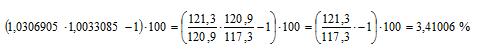 kde IrIV12 představuje bazický index spotřebitelský cen v dubnu 2012 (základ v roce 2005) a IrX11 představuje bazický index spotřebitelský cen v říjnu 2011 (základ v roce 2005). Tuto šestiměsíční míru inflace ČSÚ nezveřejňuje.