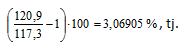 kde IrX12 představuje bazický index spotřebitelský cen v říjnu 2012 (základ v roce 2005) a IrIV12 představuje bazický index spotřebitelský cen v dubnu 2012 (základ v roce 2005). Tuto šestiměsíční míru inflace ČSÚ nezveřejňuje.